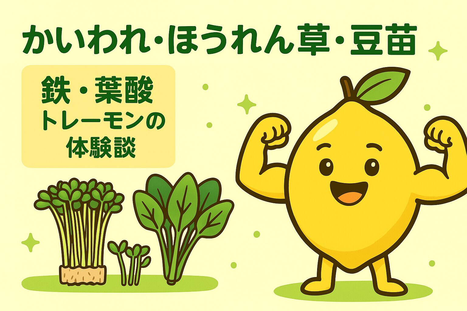 今日のテーマは「かいわれ」「ほうれん草」「豆苗」の緑の3兄弟や。どれもよく見る野菜やけど、ポイントは“セットで食べること”よりも、血液のために鉄・葉酸・ビタミンB12へ意識を向けることやねん。