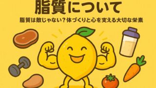 Uncategorized 脂質について 脂質は敵じゃない?体づくりと心を支える大切な栄養素 脂質は「太る原因」ではなく、心と体を支える大切な栄養素。特に筋トレに必要なテストステロンの材料であり、さらにオメガ3は鬱予防や集中力アップにも役立ちます。一人暮らしでも簡単に取り入れられるサバ缶・ナッツ・オリーブオイルなど、メンタルと筋肉を同時に支える脂質の選び方を紹介します。 2025.08.31 Uncategorized